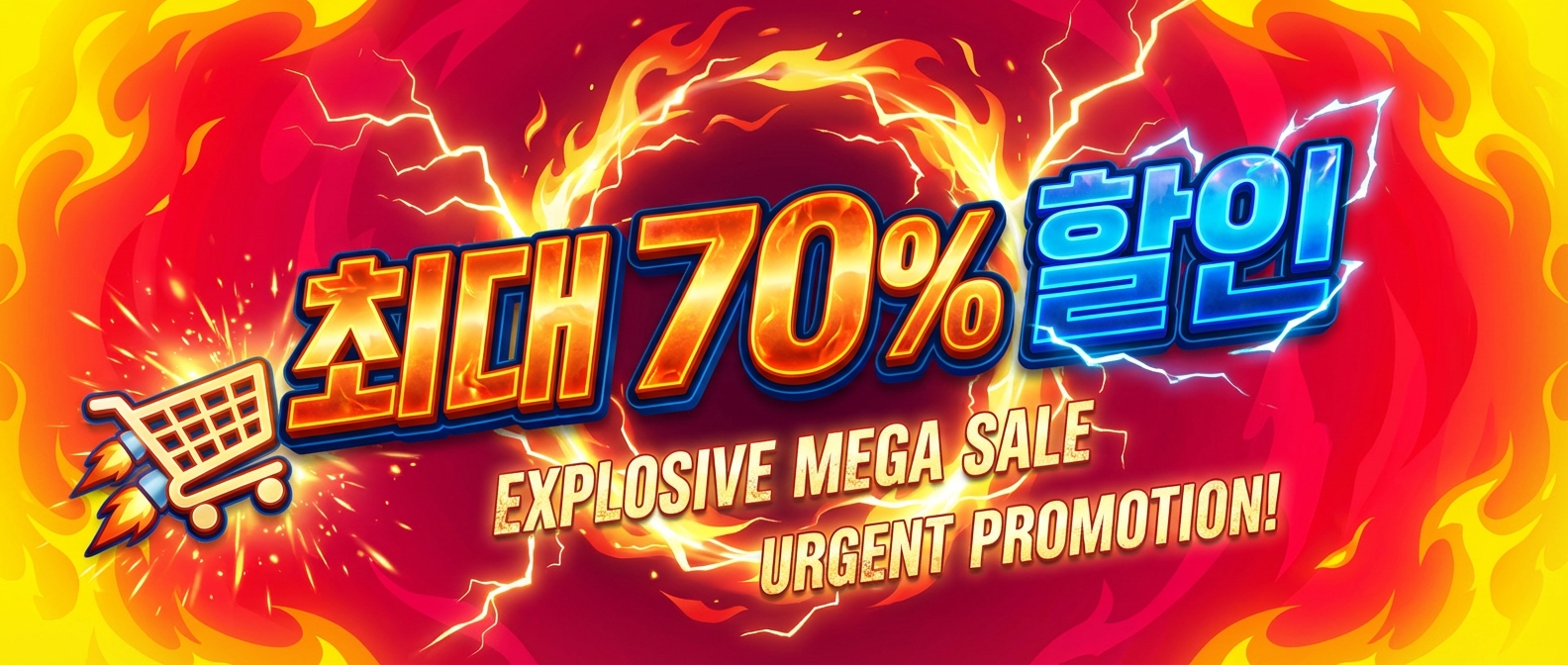 ·21:9·메가 프로모션불꽃과 번개 이펙트의 긴급 할인 프로모션 배너