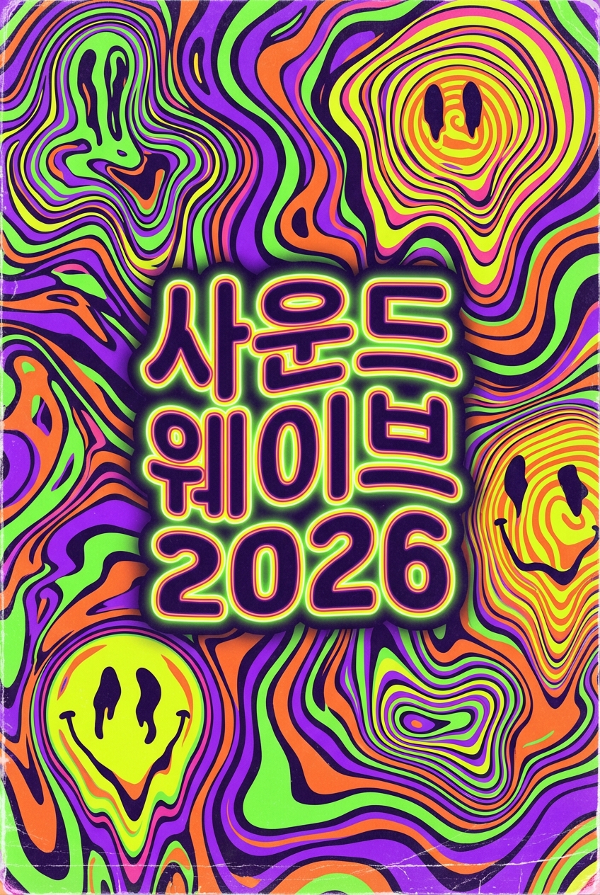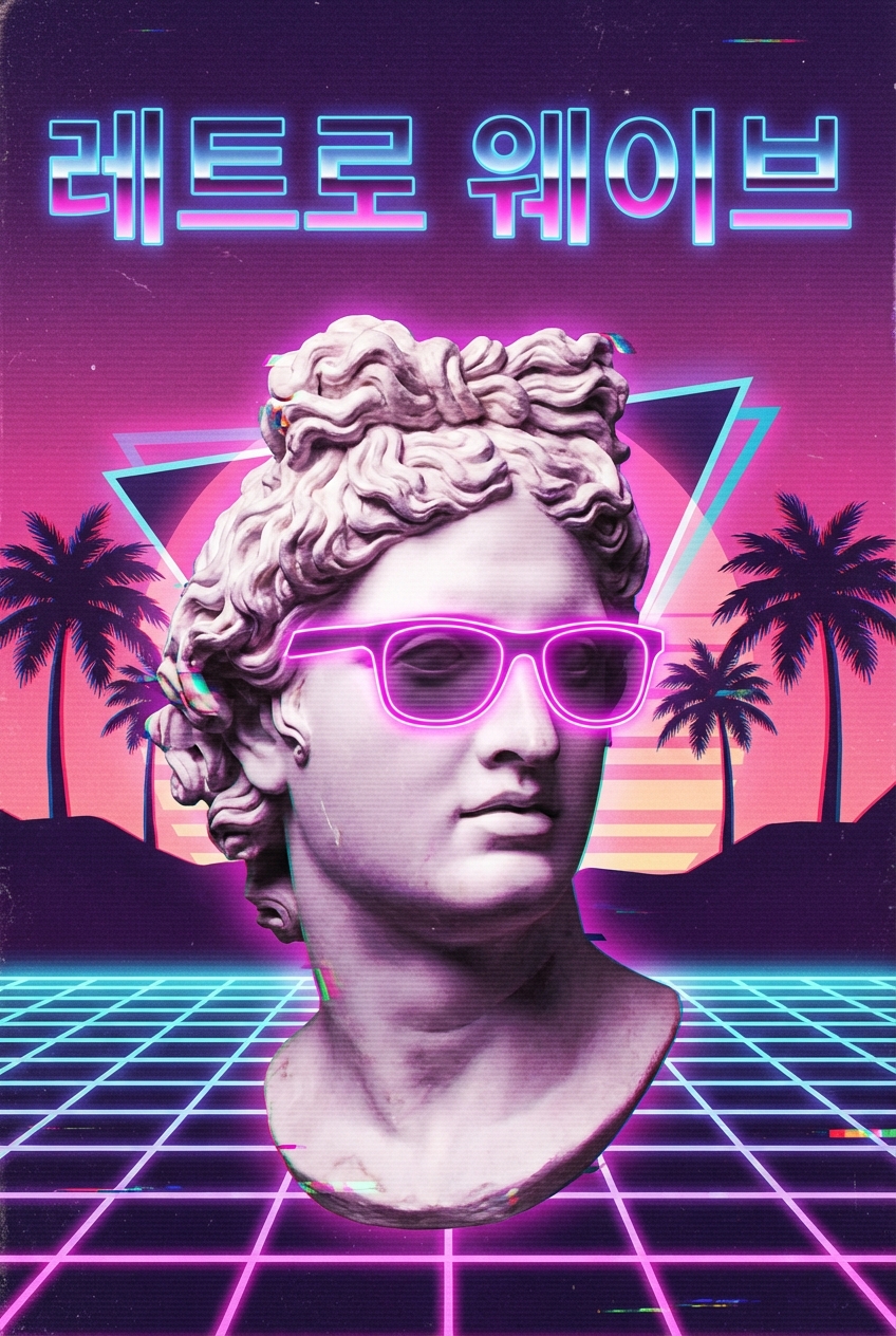·21:9·신스웨이브크롬 한글과 네온 석양의 80년대 레트로웨이브 배너