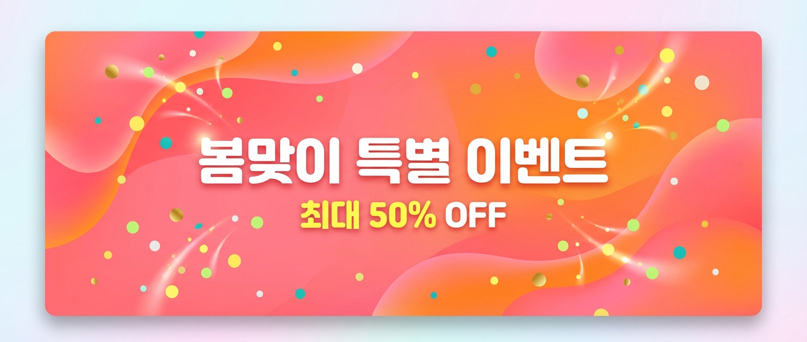계절 프로모션에 맞게 색상을 조정하세요. 텍스트와 CTA 버튼은 이미지 위에 별도로 배치하세요. 'playful confetti dots'를 빼면 더 차분한 프로모션 느낌이 됩니다.
