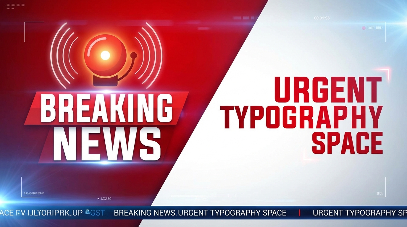'red and white' 조합이 긴급함과 신뢰감을 동시에 전달합니다. 'alarm bell'을 주제에 맞는 아이콘으로 교체하면 다양한 뉴스 주제에 활용 가능합니다.
