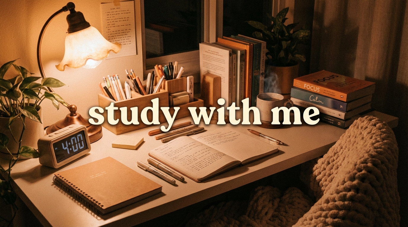 ·16:9·코지 스터디스터디 윗미, 공부 자극, 학습 콘텐츠용 차분한 섬네일